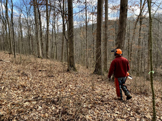 Spring is almost here! We're making a final push to give some young oaks and hickories a leg up before the trees break dormancy. The forest here was historically dominated by oak and hickory trees, but without the periodic wildfires that used to suppress the shade-tolerant species, beeches and maples eventually shade out most other trees now. By selectively culling some of the beeches and maples, we can allow a wider diversity of tree species to grow and thrive. See if you can spot the young hickories and oaks marked with green flagging tape!